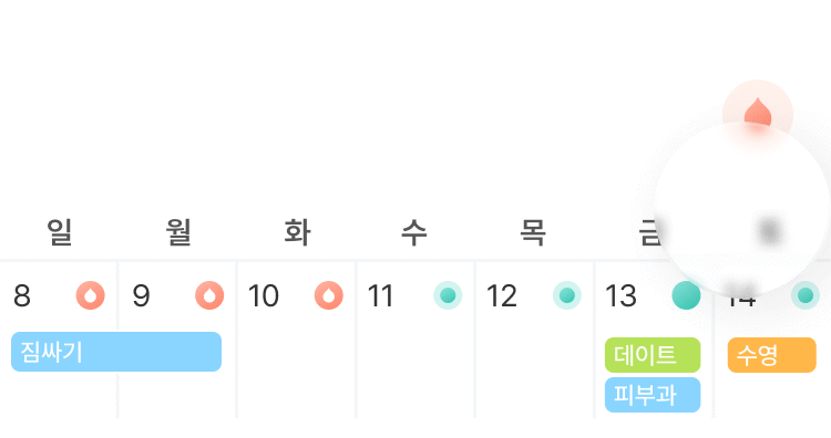월경 정보를 일정과 동시에 확인할 수 있어요