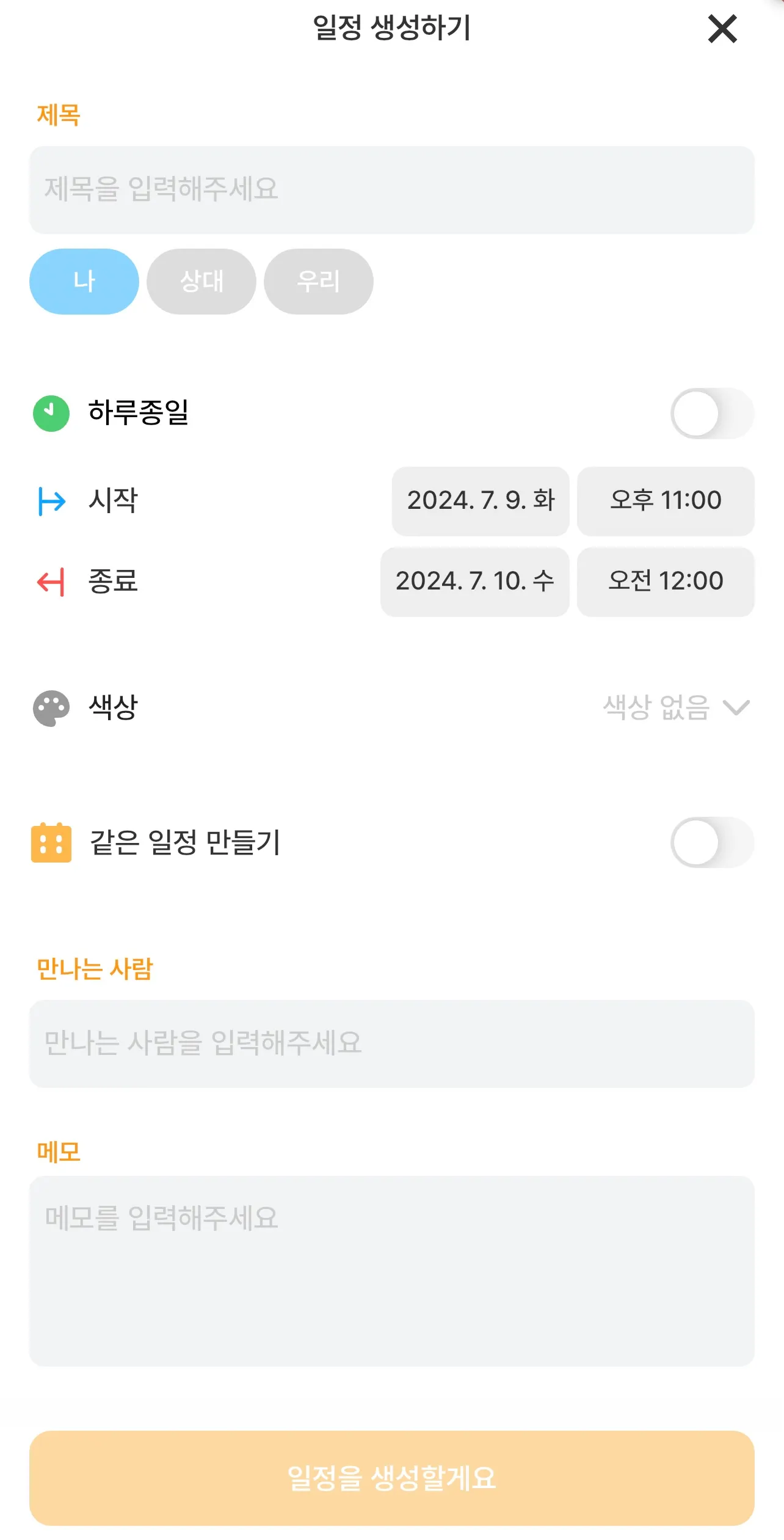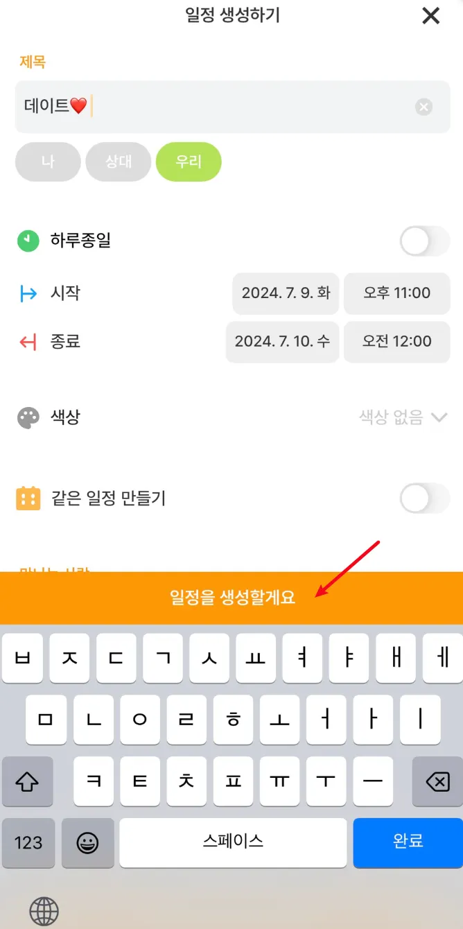 (1) 일정 생성 화면 중간의 ‘색상 없음’ 영역 클릭한 뒤,